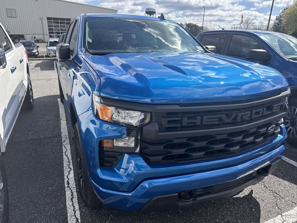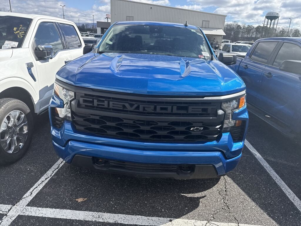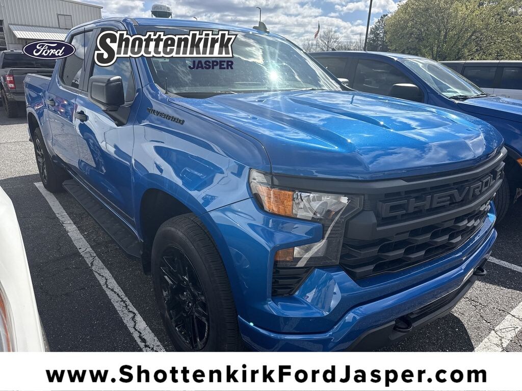 **Local Trade In**, **One Owner**, **Clean Carfax**, **Low Mileage**, **Heated Seats, Apple car play/ Android auto, **Bluetooth/Hands Free**, **Rear back up camera**, **Reverse Sensing System**, **Blind Spot Detection**, **Lane monitor**, **Remote start**, **Fixed running boards/side steps**, and **SIRIUS SAT. RADIO** Custom Convenience Package (Electric Rear-Window Defogger, EZ Lift Power Lock & Release Tailgate, LED Cargo Area Lighting, Remote Vehicle Starter System, and Theft Deterrent System (Unauthorized Entry)), Custom Value Package, Dark Essentials Package (LPO) (Black Name Plates (LPO)), High Capacity Suspension Package, Preferred Equipment Group 1CX (10-Way Power Driver Seat w/Lumbar, 120-Volt Bed Mounted Power Outlet, 120-Volt Interior Power Outlet, 3.5" Monochromatic Display Driver Info Center, Bluetooth® For Phone, Chevrolet Connected Access Capable, Color-Keyed Carpeting Floor Covering, Deep-Tinted Glass, Dual Rear USB Ports (Charge Only), Electrical Steering Column Lock, Electronic Cruise Control, Front Frame-Mounted Black Recovery Hooks, Front Rubberized Vinyl Floor Mats, HD Rear Vision Camera, Manual Tilt Wheel Steering Column, OnStar & Chevrolet Connected Services Capable, Power Front Windows w/Driver Express Up/Down, Power Front Windows w/Passenger Express Down, Power Rear Windows w/Express Down, Rear 60/40 Folding Bench Seat (Folds Up), Rear Rubberized-Vinyl Floor Mats, Remote Keyless Entry, SiriusXM Radio, Standard Tailgate, and Wi-Fi Hot Spot Capable), and Trailering Package (Hitch Guidance) Shottenkirk Ford of Jasper is pleased to offer you this exceptional 2024 Chevrolet Silverado 1500. This Custom Silverado 1500 Exterior is finished in Glacier Blue Metallic and the interior is finished in Black Cloth. CARFAX One-Owner. Clean CARFAX.