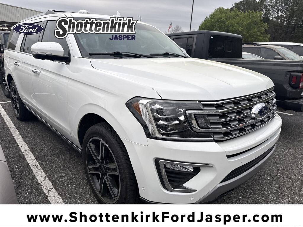 **Local Trade In**, **Clean Carfax**, Twin Panel Moonroof, **Leather interior**, **Heated/Cooled Seats**, **Front bucket seats with center console**, Apple car play/ Android auto, **Ford Sync Bluetooth**, **Bluetooth/Hands Free**, **Rear back up camera**, **Reverse Sensing System**, **Blind Spot Detection**, **Remote start**, and **SIRIUS SAT. RADIO** Cargo Package (Black Roof Rail Crossbars), Equipment Group 302A High Package (360-Degree Camera w/Split View, Enhanced Active Park Assist System, LED Headlamps & Fog Lamps, Panoramic Vista Roof, and Wheels: 22" 6-Spoke Painted Machined-Face Aluminum), Heavy-Duty Trailer Tow Package (Integrated Trailer Brake Controller and Pro Trailer Backup Assist), Special Edition Package (Continuous Controlled Damping (CCD) and Wheels: 22" Premium Black-Painted Aluminum), and Navigation System Shottenkirk Ford of Jasper is pleased to offer you this exceptional 2021 Ford Expedition Max. This Limited Expedition Max Exterior is finished in Star White Metallic Tri-Coat and the interior is finished in Medium Stone Leather.