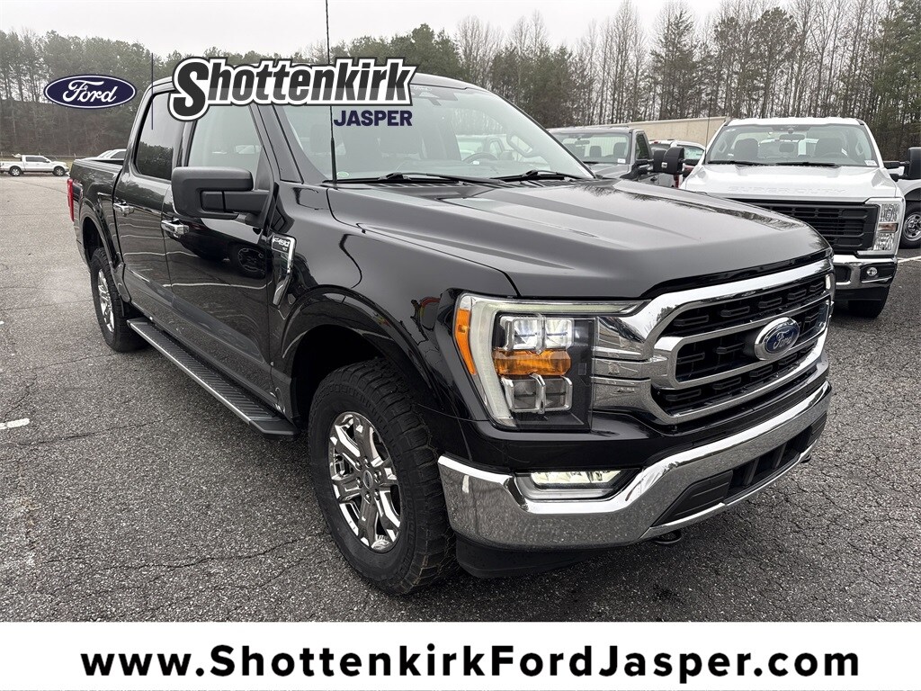 **One Owner**, **Clean Carfax**, **Low Mileage**, **Heated Seats, **Front bucket seats with center console**, Apple car play/ Android auto, **Ford Sync Bluetooth**, **Bluetooth/Hands Free**, **Rear back up camera**, **Reverse Sensing System**, **Blind Spot Detection**, **Lane monitor**, **Drivers Power Seat**, **Passenger power seat**, **Remote start**, **Fixed running boards/side steps**, and **SIRIUS SAT. RADIO** Equipment Group 302A High (10-Way Power Driver & Passenger Seats, 8" Productivity Screen in Instrument Cluster, Auto-Dimming Rear-View Mirror, Class IV Trailer Hitch Receiver, Dual Zone Electronic Automatic Temperature Control, Heated Front Seats, Intelligent Access w/Push Button Start, Leather-Wrapped Steering Wheel, LED Reflector Headlamps, LED Sideview Mirror Spotlights, Onboard 400W Outlet, Power Glass Heated Sideview Mirrors, Radio: AM/FM SiriusXM w/360L, Rear Under-Seat Storage, Remote Start System w/Remote Tailgate Release, SecuriCode Drivers Side Keyless-Entry Keypad, SYNC 4 w/Enhanced Voice Recognition, and Zone Lighting), GVWR: 6,600 lbs Payload Package, Trailer Tow Package (Integrated Trailer Brake Controller and Pro Trailer Backup Assist), XLT Chrome Appearance Package (2-Bar Style Grille w/Chrome 2 Minor Bars, Bright Polished Step Bars, Chrome Door & Tailgate Handles w/Body-Color Bezel, Chrome Single-Tip Exhaust, and Wheels: 18" Chrome-Like PVD), 4-Wheel Disc Brakes, 6 Speakers, ABS brakes, Air Conditioning, AM/FM radio, Auto High-beam Headlights, Auto Start-Stop Removal, Brake assist, Bumpers: chrome, Compass, Delay-off headlights, Driver door bin, Driver vanity mirror, Dual front impact airbags, Dual front side impact airbags, Electronic Locking w/3.55 Axle Ratio, Electronic Stability Control, Emergency communication system: SYNC 4 911 Assist, Exterior Parking Camera Rear, Front anti-roll bar, Front Center Armrest w/Storage, Front fog lights, Front reading lights, Front wheel independent suspension, Fully automatic headlights, Heated door mirrors, Illuminated entry, Interior Work Surface, Low tire pressure warning, Occupant sensing airbag, Outside temperature display, Overhead airbag, Overhead console, Panic alarm, Passenger door bin, Passenger vanity mirror, Power door mirrors, Power steering, Power windows, Power-Sliding Rear Window, Radio data system, Radio: AM/FM Stereo w/6 Speakers, Rear reading lights, Rear step bumper, Rear window defroster, Remote keyless entry, Remote Start System, Security system, Speed control, Speed-sensing steering, Split folding rear seat, Steering wheel mounted audio controls, SYNC 4, Tachometer, Telescoping steering wheel, Tilt steering wheel, Traction control, Tray Style Floor Liner (47W), Trip computer, Variably intermittent wipers, and Voltmeter Shottenkirk Ford of Jasper is pleased to offer you this exceptional 2022 Ford F-150. This XLT F-150 Exterior is finished in Agate Black Metallic and the interior is finished in Black w/Medium Dark Slate w/Cloth 40/Console/40 Front Seats or Cloth 40/Console/40 Front Seats. CARFAX One-Owner. Priced below KBB Fair Purchase Price!