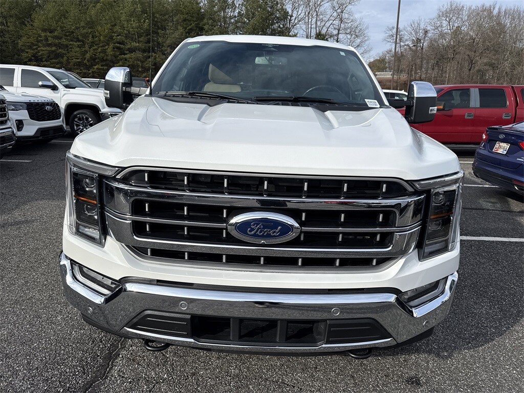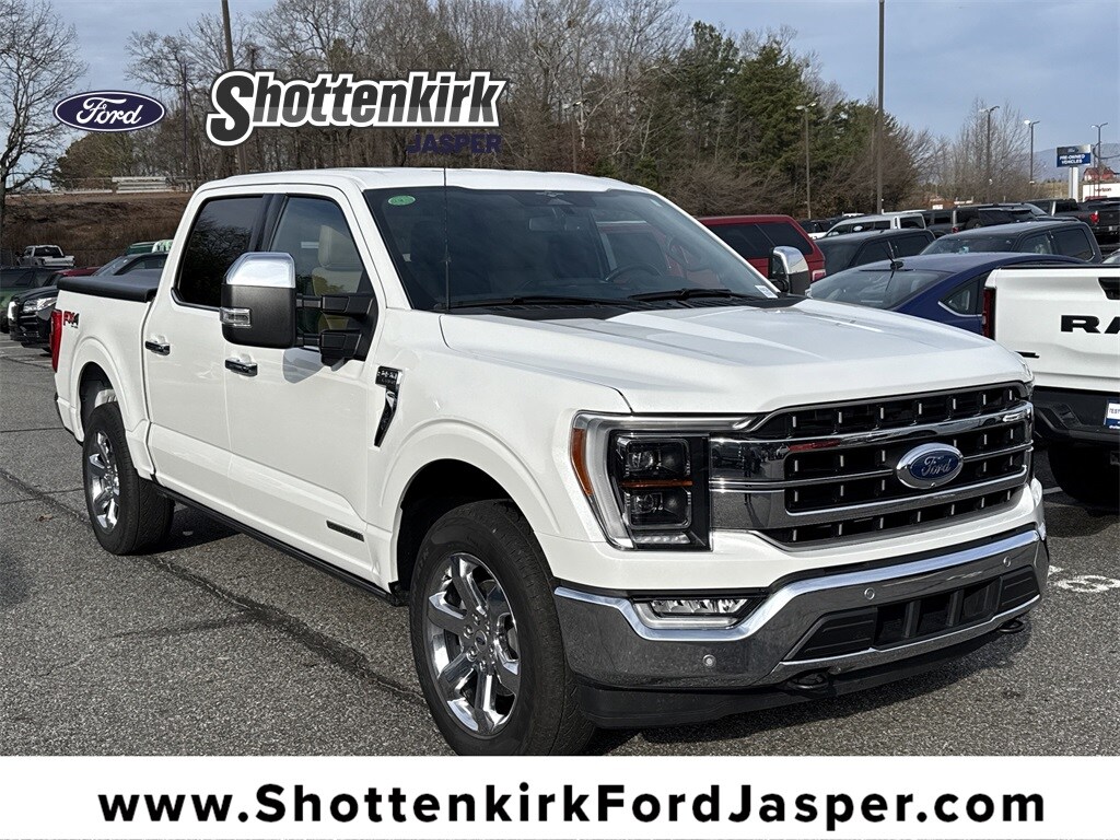 **Local Trade In**, **One Owner**, **Clean Carfax**, **Leather interior**, **Heated/Cooled Seats**, **Heated Seats, **Front bucket seats with center console**, Apple car play/ Android auto, **Ford Sync Bluetooth**, **Bluetooth/Hands Free**, **Rear back up camera**, **Reverse Sensing System**, **Blind Spot Detection**, **Lane monitor**, **GPS/ Navigation**, **Chrome appearance package**, **Drivers Power Seat**, **FX4 Package**, **Passenger power seat**, **Remote start**, Power running boards, **SIRIUS SAT. RADIO**, **Spray in bedliner**, Forward collison/adaptive cruise control, and B&O sound system Equipment Group 502A High (2nd Row Heated Seats, LED Projector w/Dynamic Bending Headlamps, Power Tilt/Telescoping Steering Column w/Memory, Rain-Sensing Wipers, Wheels: 20" Chrome-Like PVD, and Wireless Charging Pad), Ford Co-Pilot360 Assist 2.0 (Connected Built-In Navigation, Evasive Steering Assist, Intelligent Adaptive Cruise Control w/Stop & Go, Intersection Assist, and Speed Sign Recognition), FX4 Off-Road Package (4x4 FX4 Off-Road Bodyside Decal, Hill Descent Control, Monotube Rear Shocks, Off-Road Tuned Front Shock Absorbers, and Rock Crawl Mode), GVWR: 7,350 lbs Payload Package, Trailer Tow Package (Class IV Trailer Hitch Receiver, Integrated Trailer Brake Controller, and Pro Trailer Backup Assist & Pro Trailer Hitch Assist), 360 Degree Camera, 4-Wheel Disc Brakes, 8 Speakers, ABS brakes, Adjustable pedals, Air Conditioning, AM/FM radio: SiriusXM with 360L, Auto High-beam Headlights, Auto Start-Stop Removal (DISC), Auto-dimming door mirrors, Auto-dimming Rear-View mirror, Automatic temperature control, Brake assist, Bumpers: chrome, Center High-Mounted Stop Lamp CHMSL Camera Removal, Chrome wheels, Compass, Delay-off headlights, Driver door bin, Driver vanity mirror, Dual front impact airbags, Dual front side impact airbags, Electronic Locking w/3.73 Axle Ratio, Electronic Stability Control, Emergency communication system: SYNC 4 911 Assist, Exterior Parking Camera Rear, Front anti-roll bar, Front Bucket Seats, Front Center Armrest, Front dual zone A/C, Front fog lights, Front reading lights, Front wheel independent suspension, Fully automatic headlights, Garage door transmitter, Heated door mirrors, Heated front seats, Heated steering wheel, Illuminated entry, Inclination/Intrusion Sensor Removal, Interior Work Surface, Leather-Trimmed Bucket Seats, LED Sideview Mirror Spotlights, Low tire pressure warning, Memory seat, Occupant sensing airbag, Onboard Scale w/Smart Hitch, Outside temperature display, Overhead airbag, Overhead console, Panic alarm, Passenger door bin, Passenger vanity mirror, Pedal memory, Power door mirrors, Power driver seat, Power passenger seat, Power steering, Power windows, Power-Deployable Running Boards, Pro Power Onboard - 7.2KW, Radio data system, Radio: B&O Sound System by Bang & Olufsen, Radio: B&O Unleashed Sound System by Bang & Olufsen, Rear reading lights, Rear seat center armrest, Rear step bumper, Rear window defroster, Remote keyless entry, Security system, Speed control, Speed-sensing steering, Split folding rear seat, Steering wheel mounted audio controls, SYNC 4 w/Enhanced Voice Recognition, Tachometer, Telescoping steering wheel, Tilt steering wheel, Tough Bed Spray-In Bedliner, Traction control, Tray Style Floor Liner (47W), Trip computer, Turn signal indicator mirrors, Variably intermittent wipers, Ventilated front seats, and Voltmeter Shottenkirk Ford of Jasper is pleased to offer you this exceptional 2023 Ford F-150. This Lariat F-150 Exterior is finished in Star White Metallic Tri-Coat and the interior is finished in Black w/Baja Tan w/Leather-Trimmed Bucket Seats. CARFAX One-Owner.