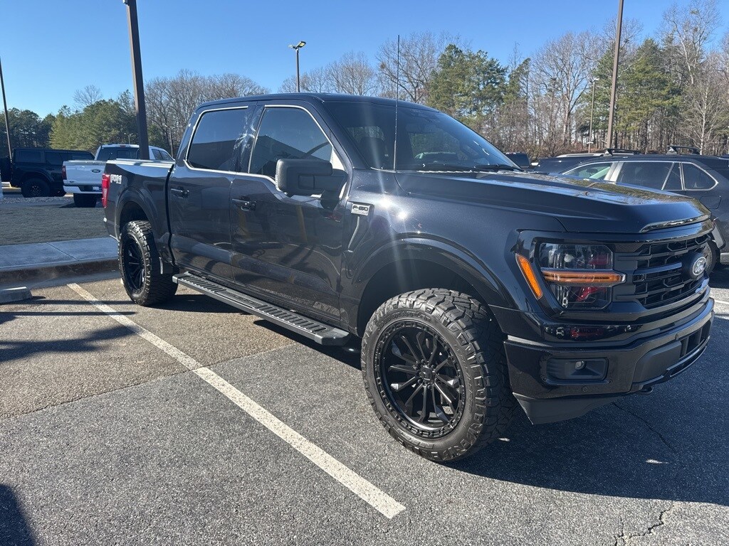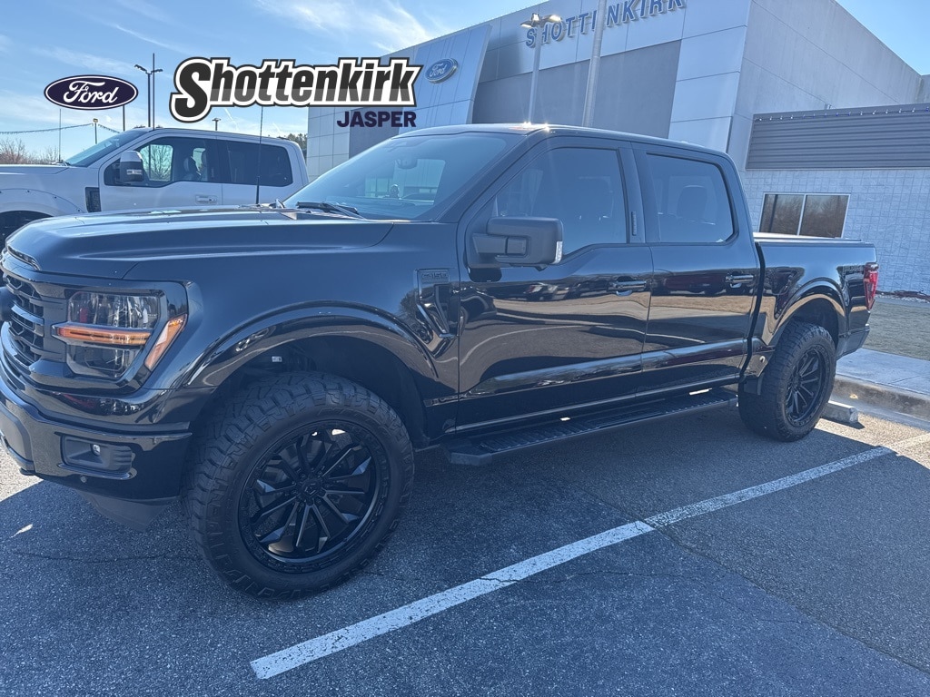 **Local Trade In**, **One Owner**, **Clean Carfax**, **Low Mileage**, **Leather interior**, **Heated Seats, **Front bucket seats with center console**, Apple car play/ Android auto, **Ford Sync Bluetooth**, **Bluetooth/Hands Free**, **Rear back up camera**, **Reverse Sensing System**, **Blind Spot Detection**, **Lane monitor**, **Remote start**, **Fixed running boards/side steps**, **SIRIUS SAT. RADIO**, and **Upgraded wheels and tires** Bed Utility Package (4 Pickup Box Tie-Down Plates, LED Box Lighting, and Tailgate Step w/Tailgate Work Surface), Equipment Group 302A Mid (400W Cab & Bed Outlets, Adaptive Cruise Control w/Stop & Go, Auto-Dimming Rear-View Mirror, Cloth 40/Console/40 Front Seats, Ford BlueCruise Equipped (90-Day Trial), Heated Front Seats, Intelligent Access w/Push Button Start, Power Glass Heated Sideview Mirrors, Power-Sliding Rear Window, Remote Start System w/Remote Tailgate Release, and Speed Sign Recognition), FX4 Off-Road Package (4x4 FX4 Off-Road Bodyside Decal, Hill Descent Control, Monotube Rear Shocks, Off-Road Tuned Front Shock Absorbers, Rock Crawl Mode, and Tray Style Floor Liner), GVWR: 7,100 lbs Payload Package, XLT Black Appearance Package (6" Black Running Boards, Black Exterior Badging, Black Grille, Body-Color Front & Rear Bumpers, Dark Interior Appliques, Floor Shifter, Gray Box Side Decal, Unique Sport Cloth 40/Console/40 Front-Seats, and Wheels: 18" Gloss Black), XLT Black Appearance Package Plus (Dual Exhaust w/Black Tips and Wheels: 20" Gloss Black Painted Aluminum), and Navigation system: Connected Navigation Shottenkirk Ford of Jasper is pleased to offer you this exceptional 2024 Ford F-150. This XLT F-150 Exterior is finished in Agate Black Metallic and the interior is finished in Black w/Leather-Trimmed Bucket Seats. CARFAX One-Owner. Clean CARFAX.