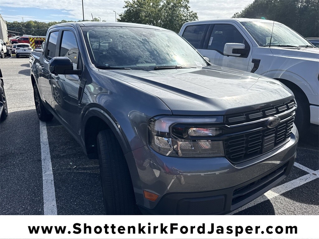 Shottenkirk Ford of Jasper is pleased to offer you this exceptional 2024 Ford Maverick. This Lariat Maverick Exterior is finished in Gray Metallic and the interior is finished in Black Onyx Premium Synthetic. Clean CARFAX. 22/29 City/Highway MPG