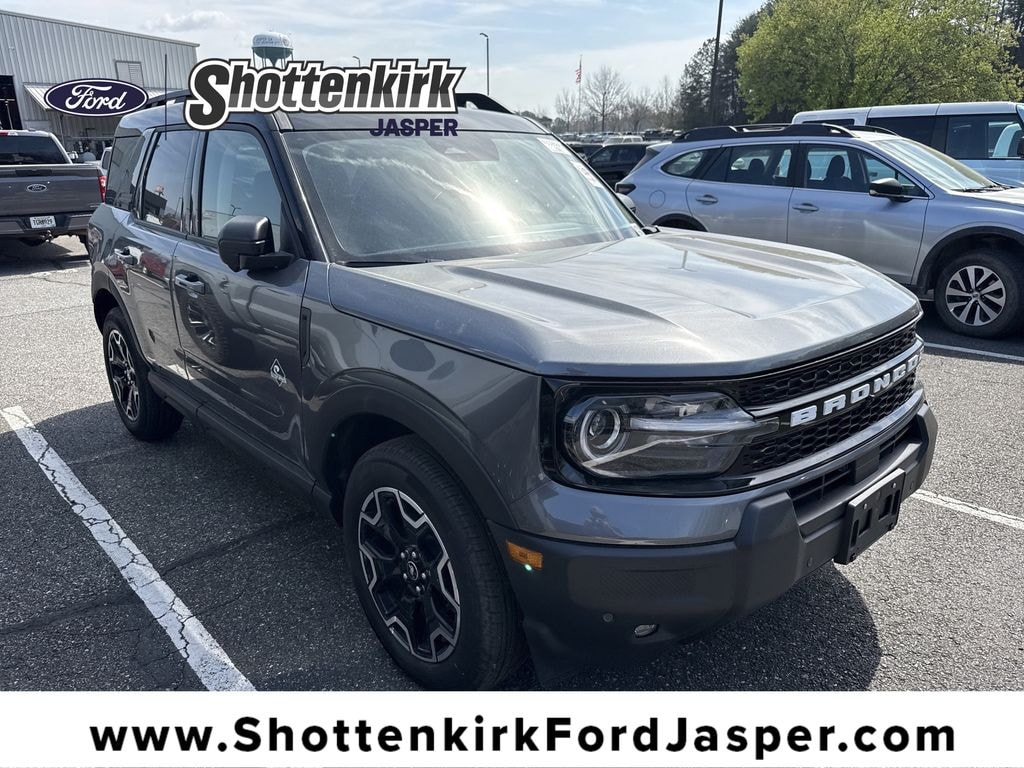 Shottenkirk Ford of Jasper is pleased to offer you this exceptional 2025 Ford Bronco Sport. This Outer Banks Bronco Sport Exterior is finished in Gray Metallic and the interior is finished in Ebony/Roast Cloth. Clean CARFAX. 25/30 City/Highway MPG