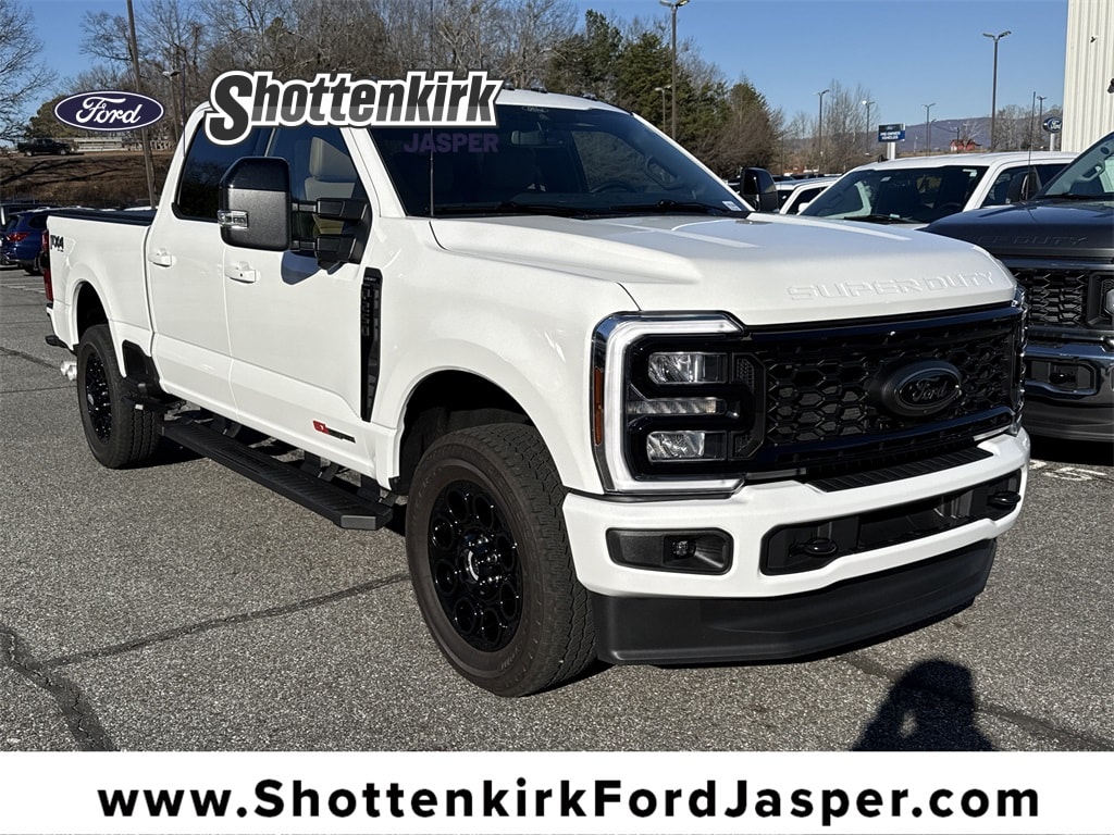 **One Owner**, **Clean Carfax**, **Low Mileage**, Twin Panel Moonroof, **Leather interior**, **Heated/Cooled Seats**, **Heated Seats, **Front bucket seats with center console**, Apple car play/ Android auto, **Ford Sync Bluetooth**, **Bluetooth/Hands Free**, **Rear back up camera**, **Reverse Sensing System**, **Blind Spot Detection**, **Lane monitor**, **GPS/ Navigation**, **Drivers Power Seat**, **FX4 Package**, **Lariat sport package**, **Passenger power seat**, **Power liftgate**, **Power windows and locks**, **Remote start**, Power running boards, **SIRIUS SAT. RADIO**, Forward collison/adaptive cruise control, and B&O sound system 5th Wheel/Gooseneck Hitch Prep Package, Black Appearance Package (6" Ebony Black Angular Running Boards, Black Painted Front Grille Surround, Ebony Black Painted Mirror Caps, Rear Wheel Well Liners, and Tough Bed Spray-in Bedliner), FX4 Off-Road Package (Hill Descent Control, Off-Road Specifically Tuned Shock Absorbers, and Unique FX4 Off-Road Box Decal), GVWR: F-250 >10K Package, High Capacity 11.6" Axle Upgrade Package, Order Code 608A (Flow-Through Console, Front ActiveX Trimmed 40/Console/40 Seats, SYNC 4 with Enhanced Voice Recognition, and Wheels: 18" Bright Machined and Carbonized Gray Aluminum), 4-Wheel Disc Brakes, 8 Speakers, ABS brakes, Adjustable pedals, Air Conditioning, All-Weather Floor Mats, Alloy wheels, AM/FM radio: SiriusXM with 360L, Auto High-beam Headlights, Auto-dimming Rear-View mirror, Automatic temperature control, BLIS with Cross-Traffic Alert, Brake assist, Bumpers: chrome, Compass, Delay-off headlights, Driver door bin, Driver vanity mirror, Dual AGM 68 AH Battery, Dual front impact airbags, Dual front side impact airbags, Electronic Stability Control, Electronic-Locking with 3.31 Axle Ratio, Emergency communication system: SYNC 4 911 Assist, Front anti-roll bar, Front Bucket Seats, Front Center Armrest, Front dual zone A/C, Front fog lights, Front reading lights, Fully automatic headlights, Garage door transmitter, Gooseneck Hitch Kit, Heated door mirrors, Heated front seats, Heated rear seats, Heated steering wheel, Illuminated entry, Interior Work Surface, Internet access capable: FordPass Connect 5G, LED Roof Clearance Lights, Low tire pressure warning, Memory seat, Navigation System, Onboard Scales and Smart Hitch, Outside temperature display, Overhead airbag, Overhead console, Panic alarm, Passenger door bin, Passenger vanity mirror, Pedal memory, Power door mirrors, Power driver seat, Power passenger seat, Power steering, Power windows, Privacy Glass, Pro Power Onboard - 2kW, Rain sensing wipers, Rear Parking Sensors, Rear reading lights, Rear seat center armrest, Rear step bumper, Rear window defroster, Remote keyless entry, Retractable Bed Side-Step, Retractable Rear Corner Bed Step, Retractable Tonneau Pickup Box Cover, Security system, Speed control, Split folding rear seat, Steering wheel mounted audio controls, Tachometer, Telescoping steering wheel, Tilt steering wheel, Trip computer, Turn signal indicator mirrors, Twin Panel Power Moonroof, Upfitter Switches (6), Variably intermittent wipers, Vehicle Integration System 2.0, Ventilated front seats, and Wheels: 20" Machined and Ebony Black High Gloss Shottenkirk Ford of Jasper is pleased to offer you this exceptional 2025 Ford F-250SD. This Lariat F-250SD Exterior is finished in Star White Metallic Tri-Coat and the interior is finished in Baja Leather. CARFAX One-Owner. Clean CARFAX.