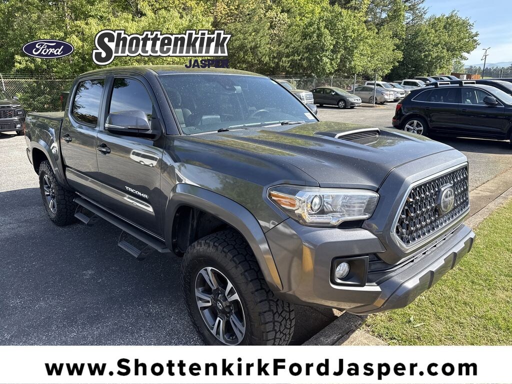 ** Super Clean **, **Local Trade In**, **One Owner**, **Clean Carfax**, and TRD SPORT TRD Sport Package (120V/400W Deck Mounted AC Power, Color Keyed Rear Bumper, Engine Immobilizer, LED Daytime Running Lamps, Smart Key w/Push Button Start, and Wide Angle Front Fog Lamps), ABS brakes, Air Conditioning, Alloy wheels, AM/FM radio: SiriusXM, Anti-whiplash front head restraints, Auto High-beam Headlights, Auto-dimming Rear-View mirror, Brake assist, Bumpers: body-color, CD player, Compass, Driver door bin, Dual front impact airbags, Dual front side impact airbags, Electronic Stability Control, Exterior Parking Camera Rear, Front anti-roll bar, Front Bucket Seats, Front Center Armrest, Front fog lights, Front reading lights, Front wheel independent suspension, Illuminated entry, Knee airbag, Low tire pressure warning, Occupant sensing airbag, Outside temperature display, Overhead airbag, Overhead console, Panic alarm, Passenger door bin, Power door mirrors, Power steering, Power windows, Rear step bumper, Remote keyless entry, Speed control, Speed-sensing steering, Split folding rear seat, Steering wheel mounted audio controls, Tachometer, Telescoping steering wheel, Tilt steering wheel, Traction control, Trip computer, and Variably intermittent wipers Shottenkirk Ford of Jasper is pleased to offer you this exceptional 2018 Toyota Tacoma. This TRD Sport Tacoma Exterior is finished in Magnetic Gray Metallic and the interior is finished in Black Pkg/Gun Metal Leather. CARFAX One-Owner. Clean CARFAX.